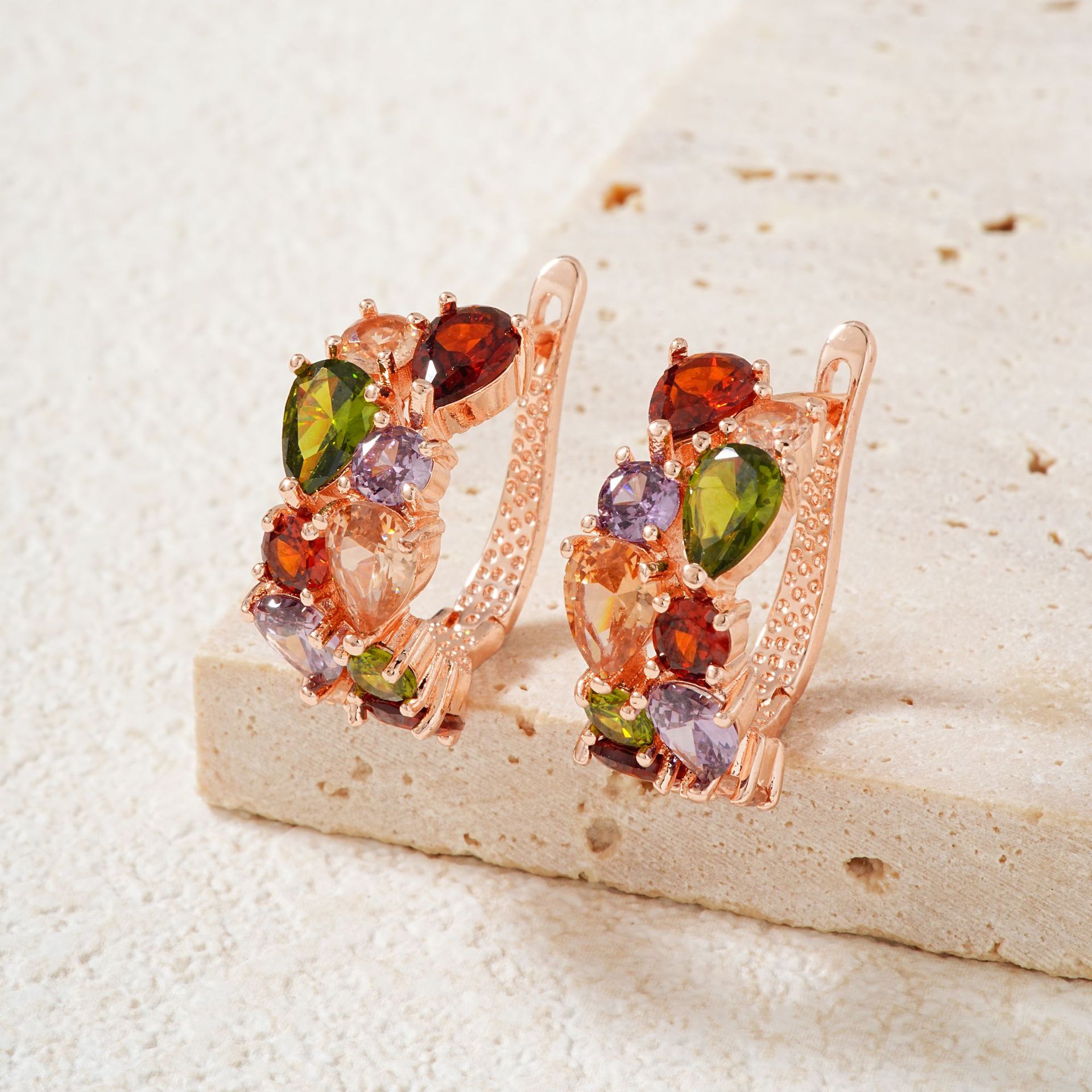 Mona Lisa Earrings European and American Hot Selling Crystal Zircon Fashion Rose Gold Earrings Zircon Ear Jewelry Cross-Border Earrings