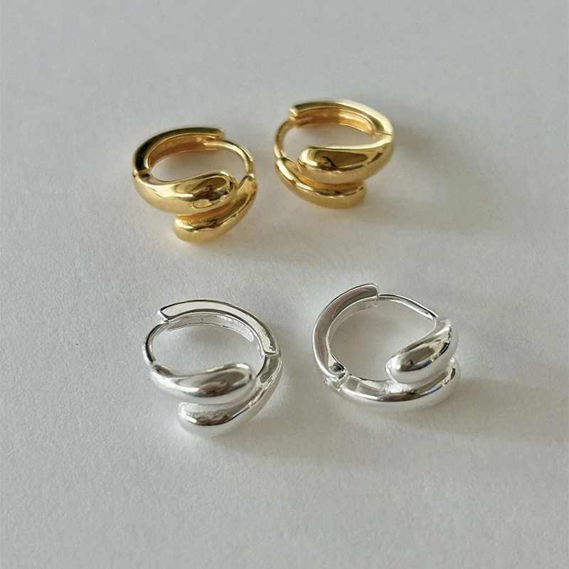 European and American Cross-Border Hot-Selling Double-Layer Water Drop Plain Ring Copper Buckle Fashion Versatile Simple Geometric Ear Buckle Wholesale Earrings Jewelry