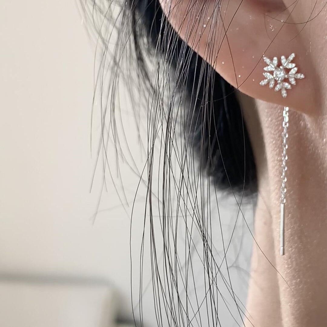 S925 Silver Snowflake Earrings for Women, Accessible Luxury Niche Long Tassel Earrings, Simple and Elegant Ear Piercing Autumn and Winter Earrings