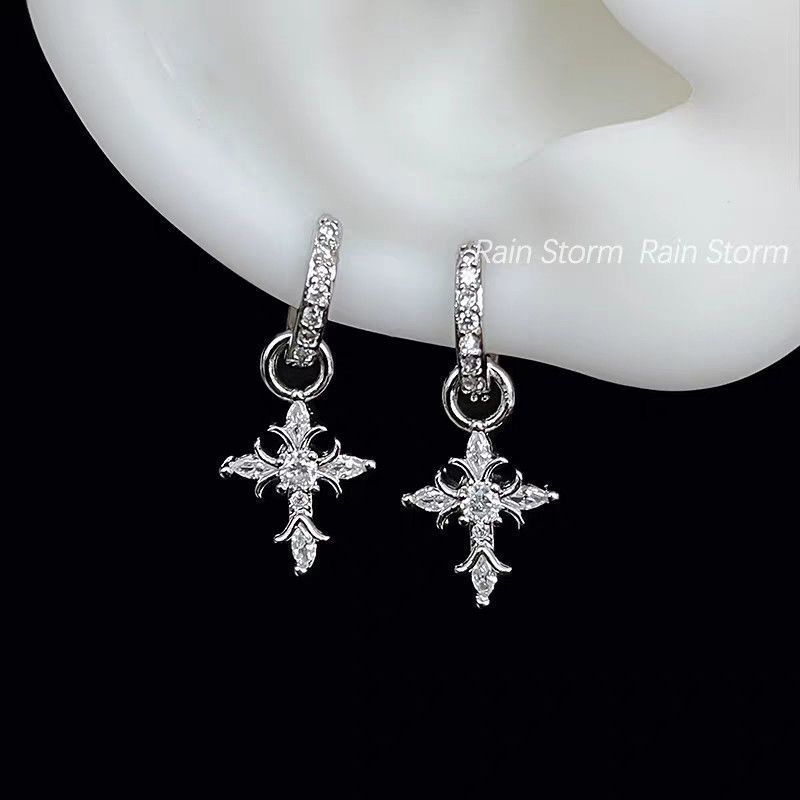 Full Diamond Baroque Cross Pendant Earrings Niche Design Iris Flower Earrings Exquisite Versatile Unique Earrings