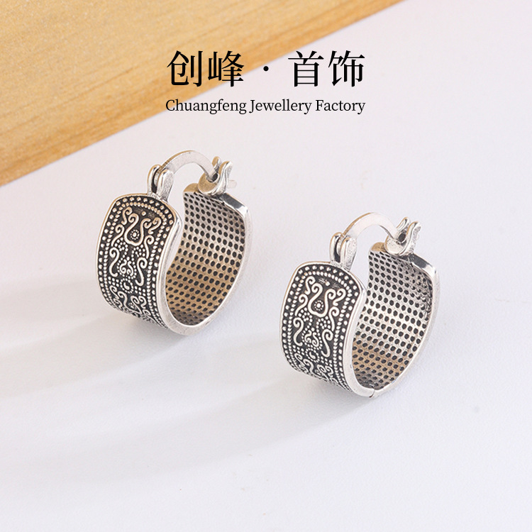 Foreign Trade Cross-Border Earrings 2025 New Retro Tang Grass Pattern Earrings Versatile High-End Plain Ring Niche Design Earrings