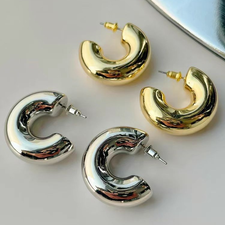 Copper Plated 18K Gold European and American Fashion Cross-border Hot Selling Metal Wind Fat C Earrings Niche Joker High-end Ear Jewelry Women