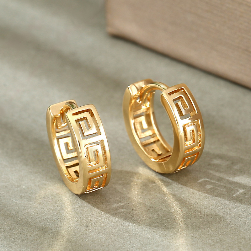 [Copper] Cross-Border Retro Geometric Pattern Earrings, Fashionable European and American Stylish Trendy Earrings, Elegant and Versatile Ear Jewelry