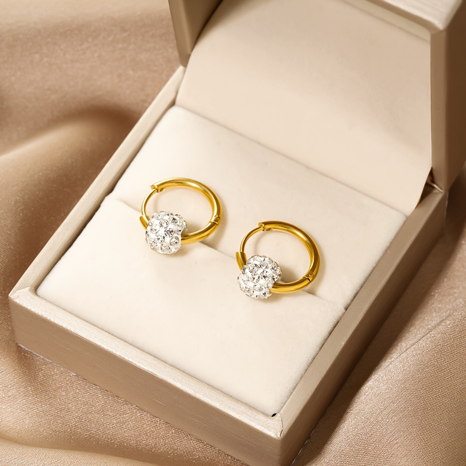 Cross-Border Popular Spherical Earrings for Women with Diamonds, Light Luxury, High-End Temperament Earrings, Exquisite and Versatile High-End Earrings New Style