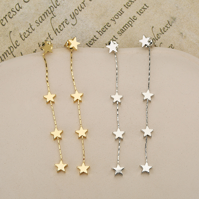 Europe and the United States cross-border new long tassel fashion smooth five-pointed star earrings female wholesale temperament sweet exaggerated earrings