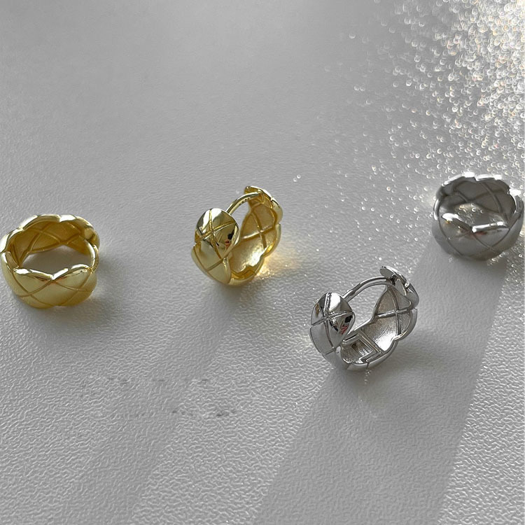Lingge Earrings Niche Design Sense Light Luxury Small Chanel Style Earrings Elegant Ear Buckle Golden Silver Needle Ear Ring for Women