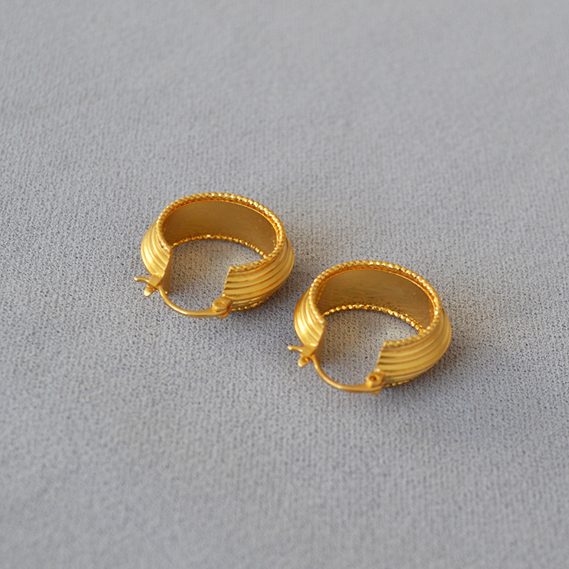 French niche simple retro striped gear gold bead lace brass gold plated elegant earrings earrings Qingdao jewelry