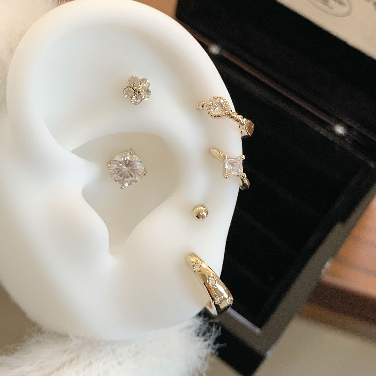 Cao Shi wish micro-inlaid zircon full-diamond ear buckle ear ring copper iron gold personality INS style all-match earrings fashion jewelry