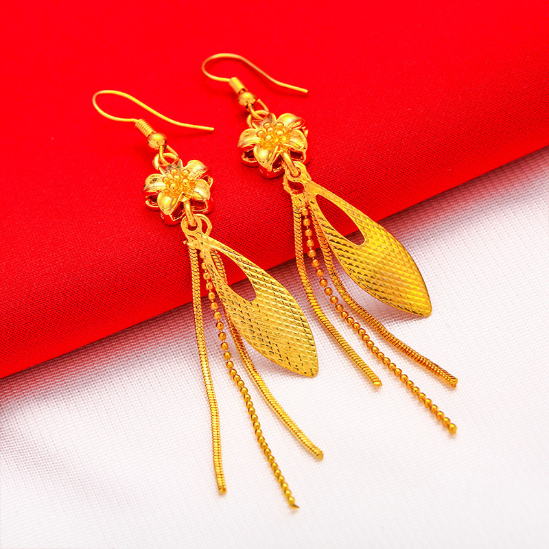 Wholesale Vietnam gold earrings women's brass gold-plated earrings bridal fashion rose tassel earrings wholesale