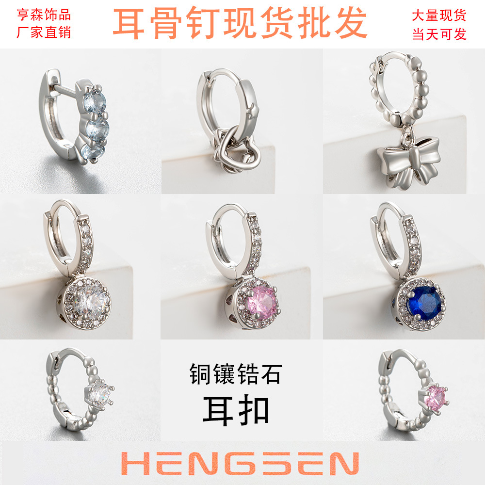 Henson Cute Girl Bow Ear Buckle Copper Set Zircon Fashion Ear Ring Earrings