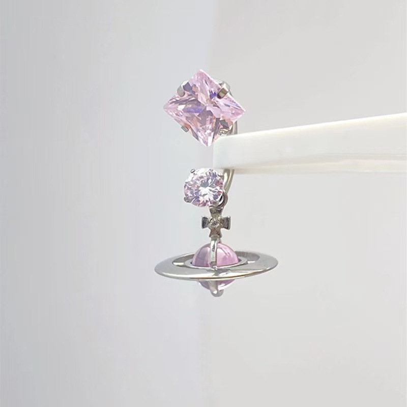 Fashion Sweet Cool Style Micro-inlaid Zircon Saturn Horseshoe Ring Ear Bone Nail Niche Personality All-match Screw Planet Earrings