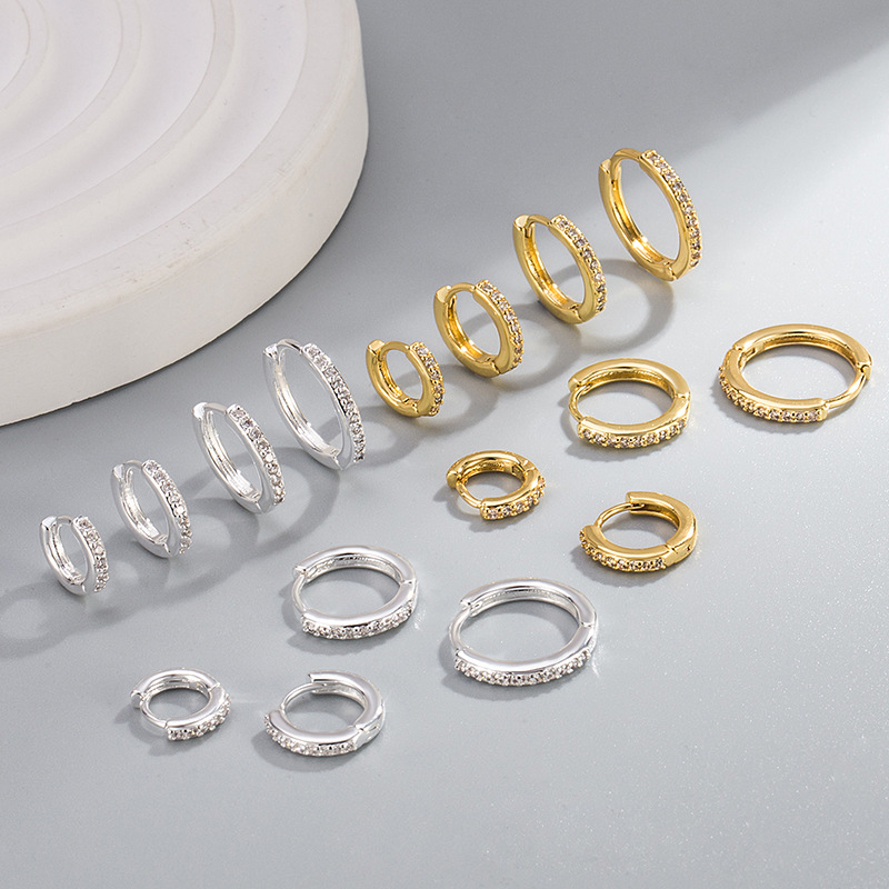 European and American Cross-Border Simple Men's and Women's Fashion Circle Single Row Diamond Earrings Elegant Earrings High Quality 18K Gold Plated Earrings