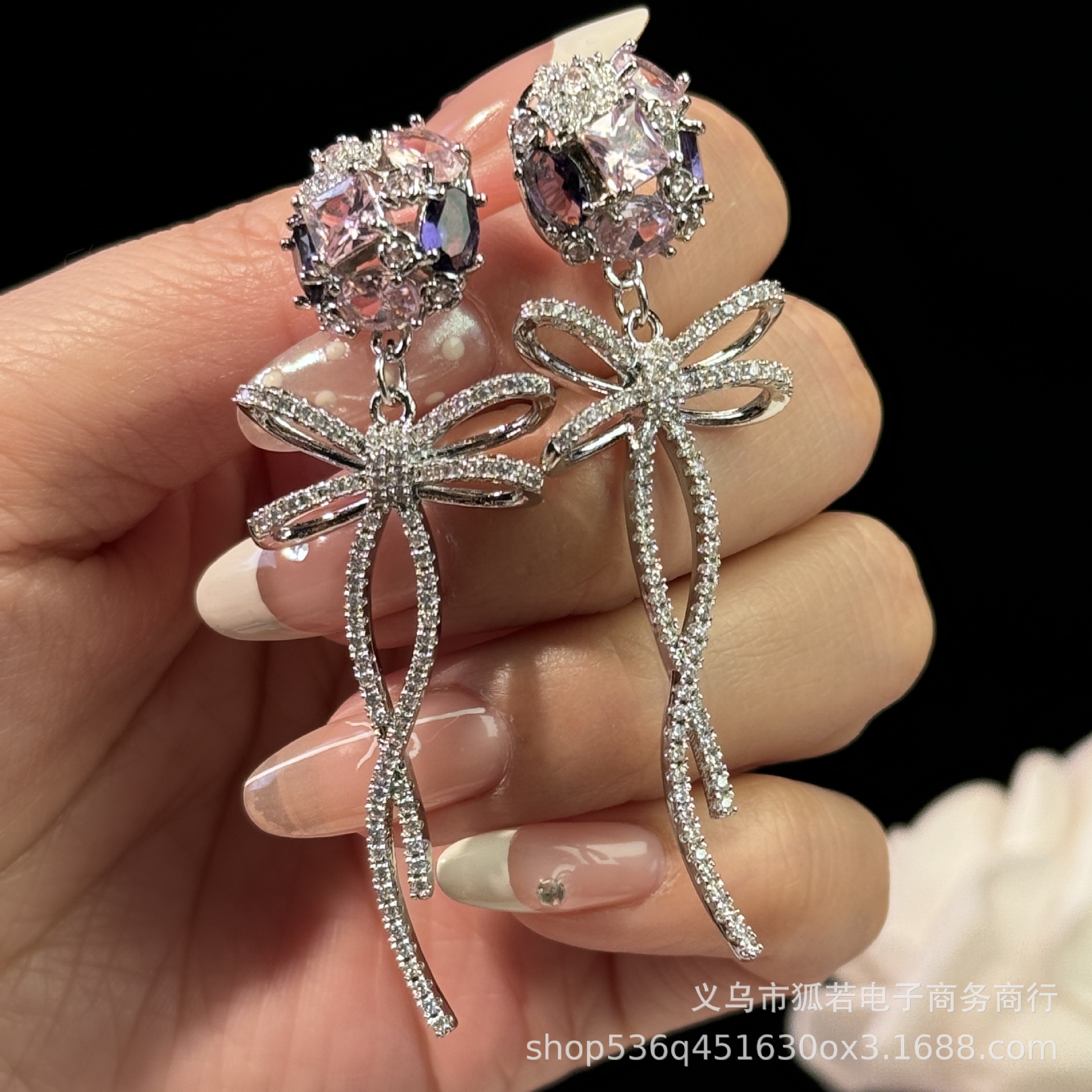 Yiwu Factory Confession Balloon Bow Sweet Earrings High-end Long Earrings Women's Silver Needle New Niche All-match