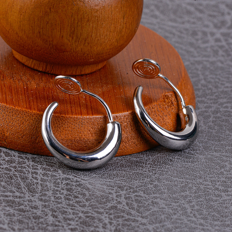 Crescent Silver Metal Earrings Glossy Plain Hoop Simple Invisible Earrings Without Piercing All-In-One Mosquito Coil Disc Niche