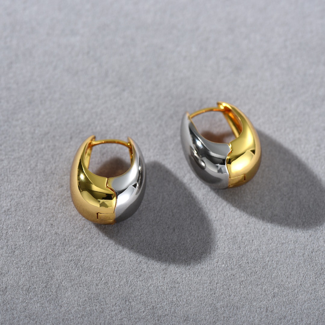 European and American fashion simple cold style metal gold and silver color matching ear buckle earrings ins niche creative trend earrings women
