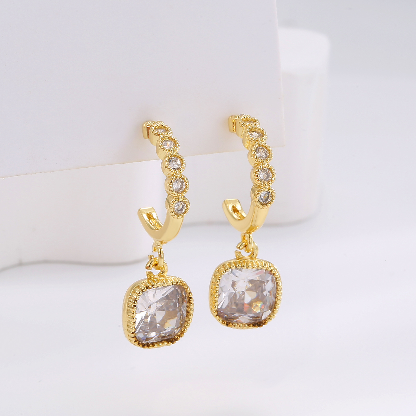 S925 Sterling Silver Needle Small Zircon Ear Clip Light Luxury High Sense Extensive Women Transparent Geometric Square Crystal Earrings Earrings