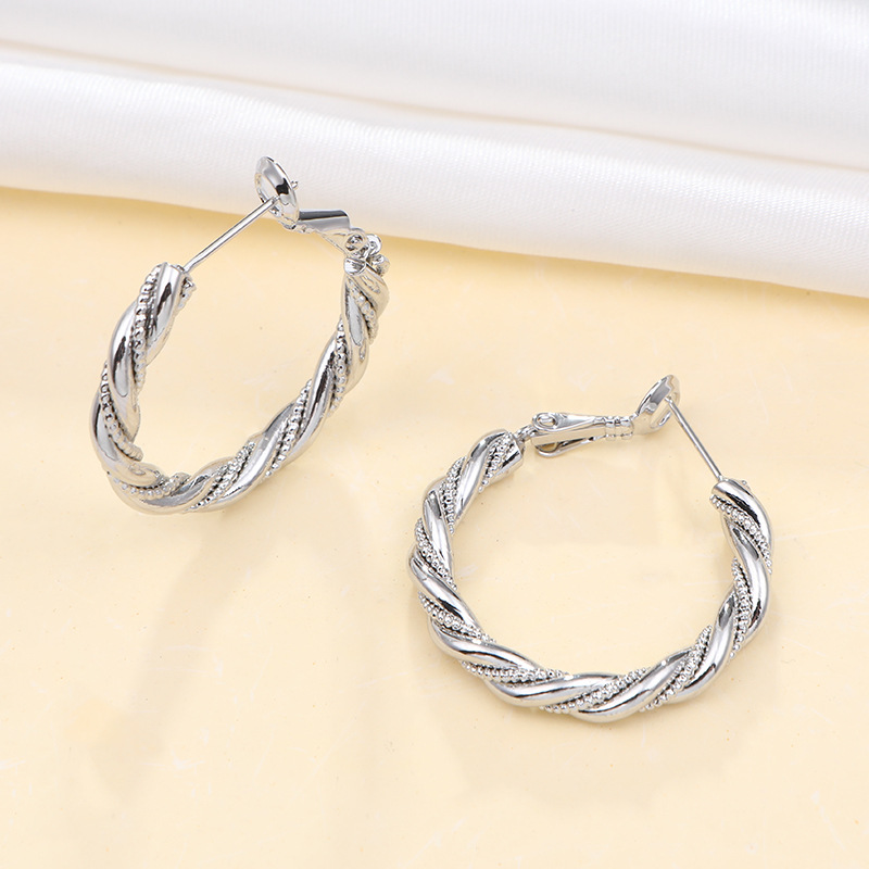 925 Silver Needle Hoop Earrings for Women, Accessible Luxury, High-End Plain Hoop Earrings, Spiral Twist Exaggerated Fashionable Simple Earrings