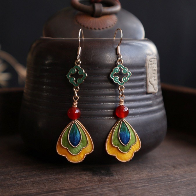 Velvet Flower Filigree Petal Earrings, National Style Colorful Stacked Earrings, Small Fresh Dunhuang Style Clothing Matchinging Earrings