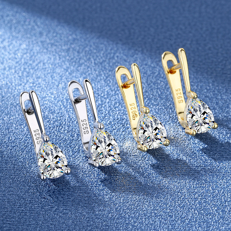 European and American cross-border ins style water drop diamond French ear buckle earrings niche light luxury best-selling personalized creative earrings for women
