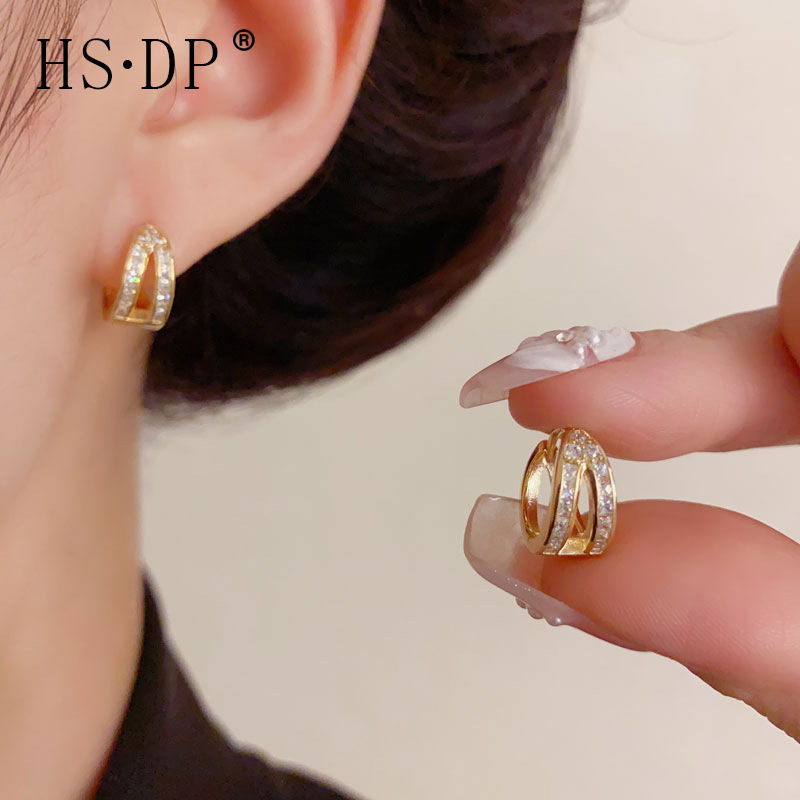 Korean Style Simple Diamond-Encrusted Double-Layer Small Earrings, Exquisite Niche Unique Design Earrings, Light Luxury and Versatile Earrings Wholesale