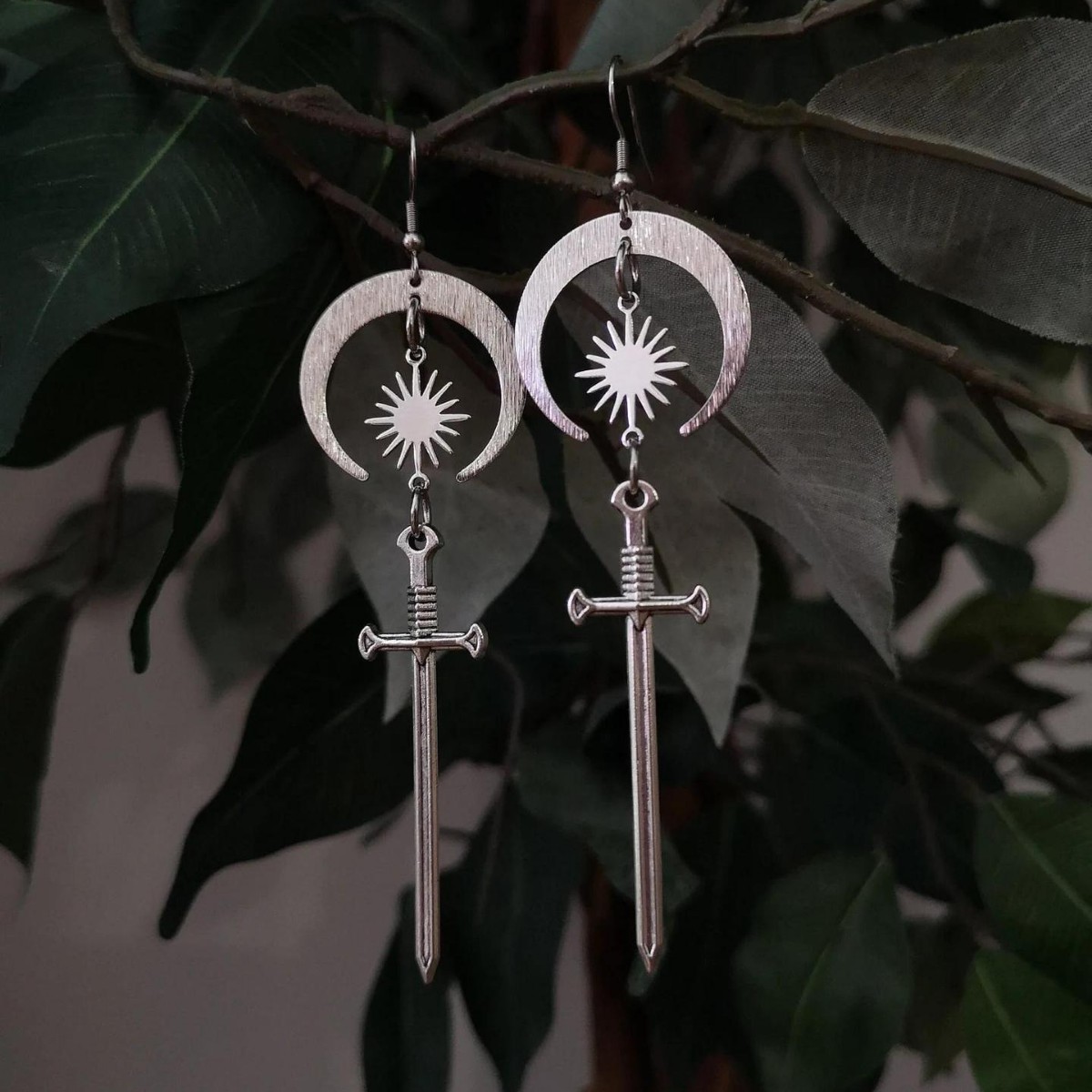 Sword earrings heavenly sword earrings moon and stars earrings medieval fantasy witch jewelry long sword earrings wholesale