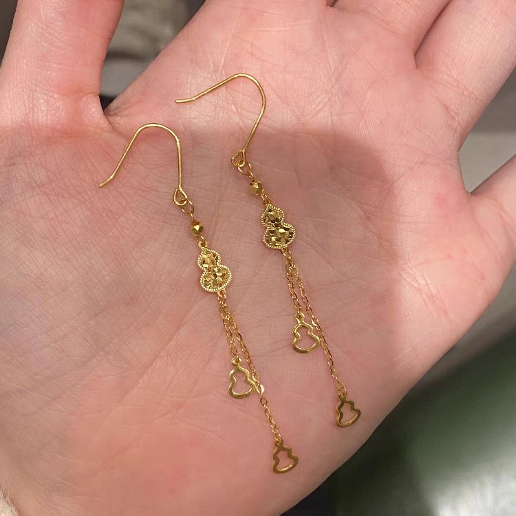 New Chinese Style Long Tassel Sparkling Gold Gourd Gold Earrings Chinese Style High-End Light Luxury Fu Lu Earrings