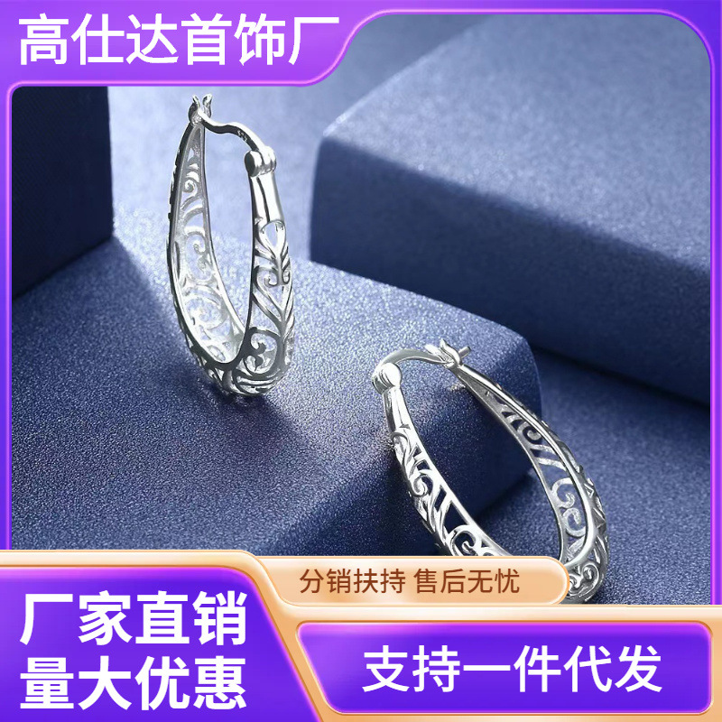Foreign trade cross-border new source 2023 new earrings S925 silver needle U-shaped hollow flower retro earrings earrings