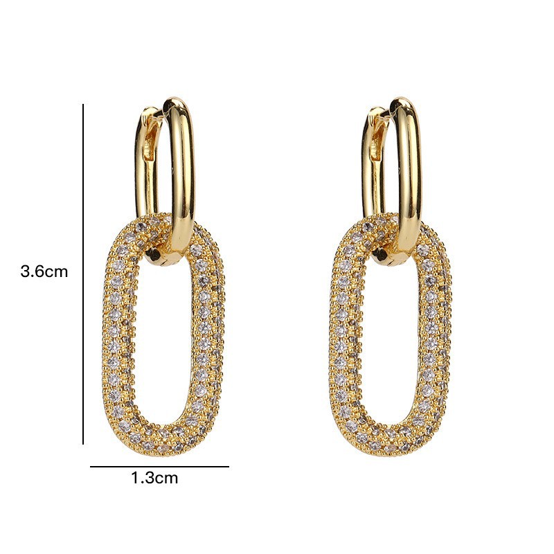 Personalized European and American Elegant Oval Interlocking Earrings for Girls, Cool Style Inlaid with Diamonds, Elegant Earrings, Design Earrings