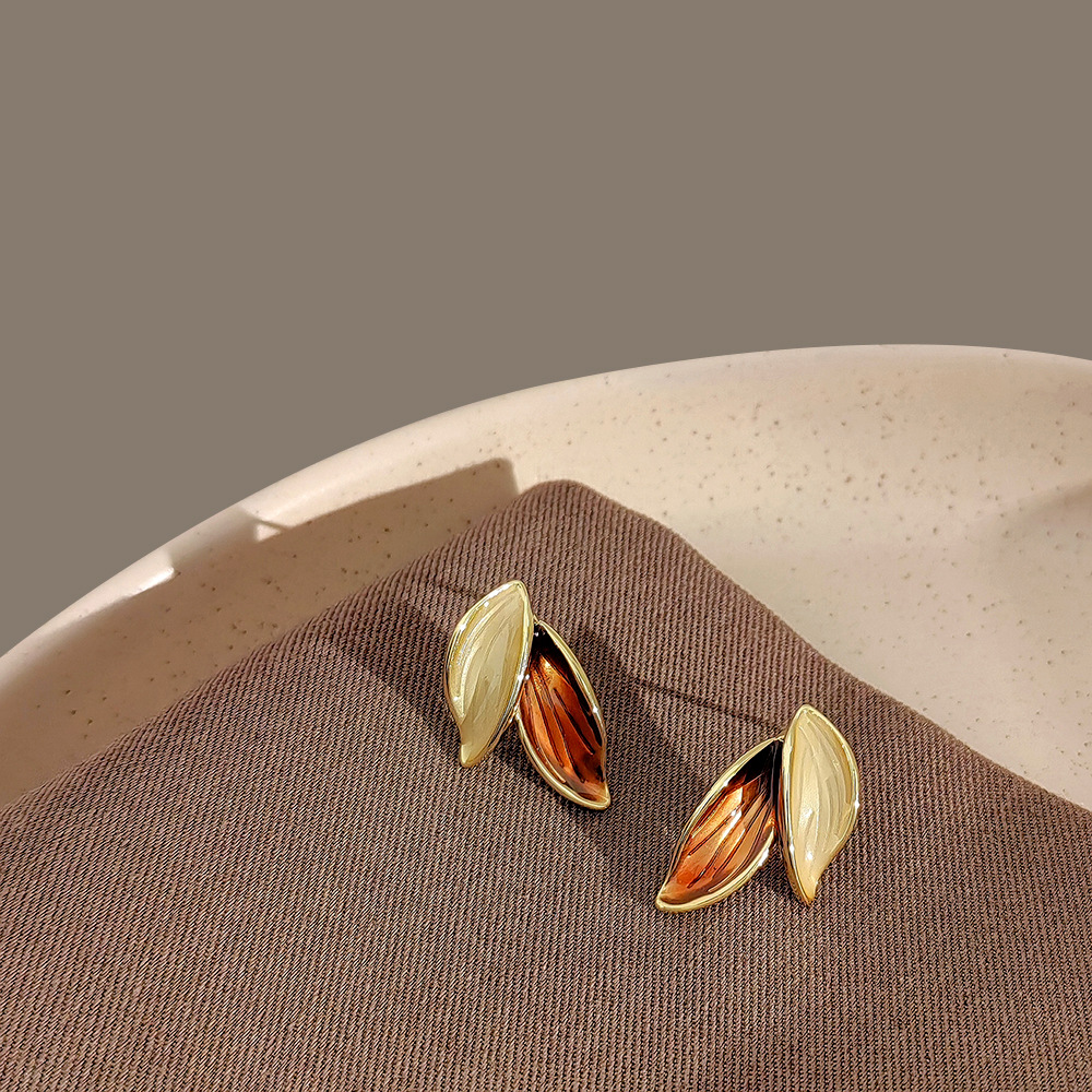 925 silver needle Maillard 2023 autumn and winter popular contrast color earrings unique niche design high-grade leaf earrings