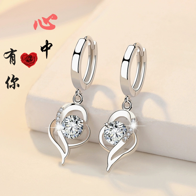 Aliexpress New Silver-plated Soft Earrings for Girls New Korean Elegant Ear Jewelry Heart-shaped Earrings Factory Wholesale
