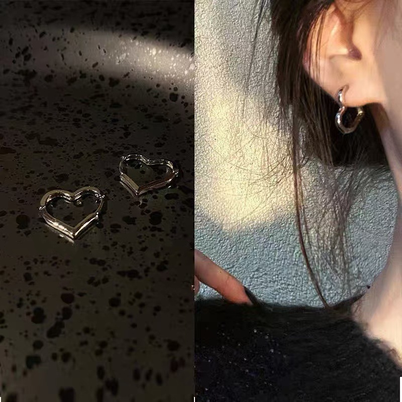 Copper Hollow Heart Korean Simple Earrings New Trendy Ins Minimalist Sweet Cool Everyday Versatile Hoop Earrings Wholesale