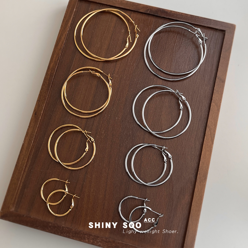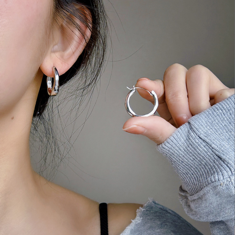 2024 new explosions plain ring earrings women's high-end sense of Europe and the United States exaggerated big ear ring ear buckle silver ring ear jewelry