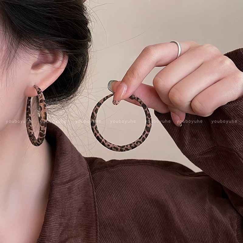 Autumn and Winter Elegant Geometric Square Leopard Print Earrings for Women European and American Style Exaggerated Face-Showing Small Earrings Niche Design Earrings