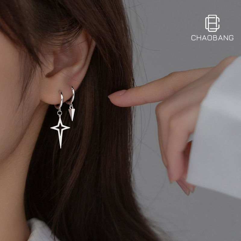 Asymmetric Tapered Four-Corner Star Women's Ear Buckle Ins Style Niche Fashion Light Luxury Earrings Simple Style Design Sense Ear Ring