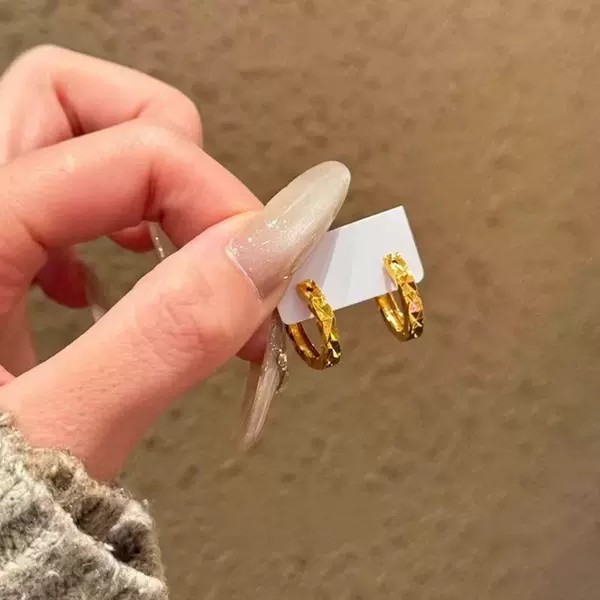 Long-term non-fading sand gold flash broken ice ear buckle light luxury irregular cut ear ring earrings broken ice ice ear buckle