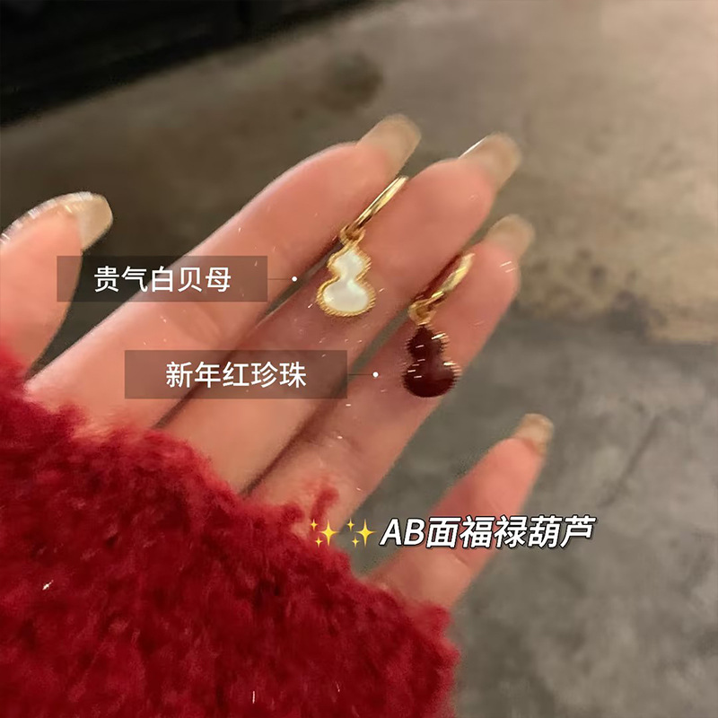 Double-Sided Red Fritillaria Gourd Earrings Female Style Light Luxury High-Level Atmospheric Gentle Fashion All-Match Ear Buckle Earrings