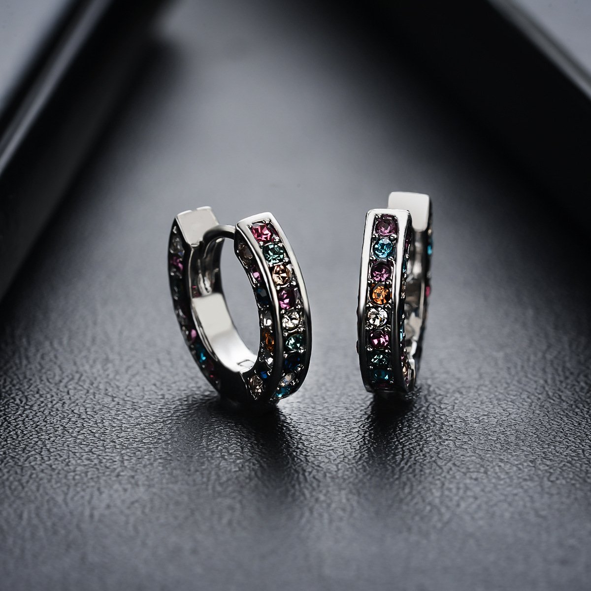 Colorful zircon earrings men's exquisite personality versatile design inlaid brick trendy earrings women's fashion light luxury high-end jewelry