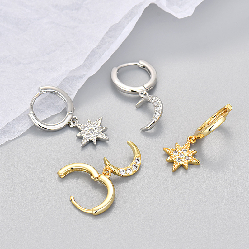 European and American Star Moon Ear Buckle Women's New Trendy Fashion Cross-border Hot Sale Light Luxury Niche Design Asymmetric Ear Jewelry