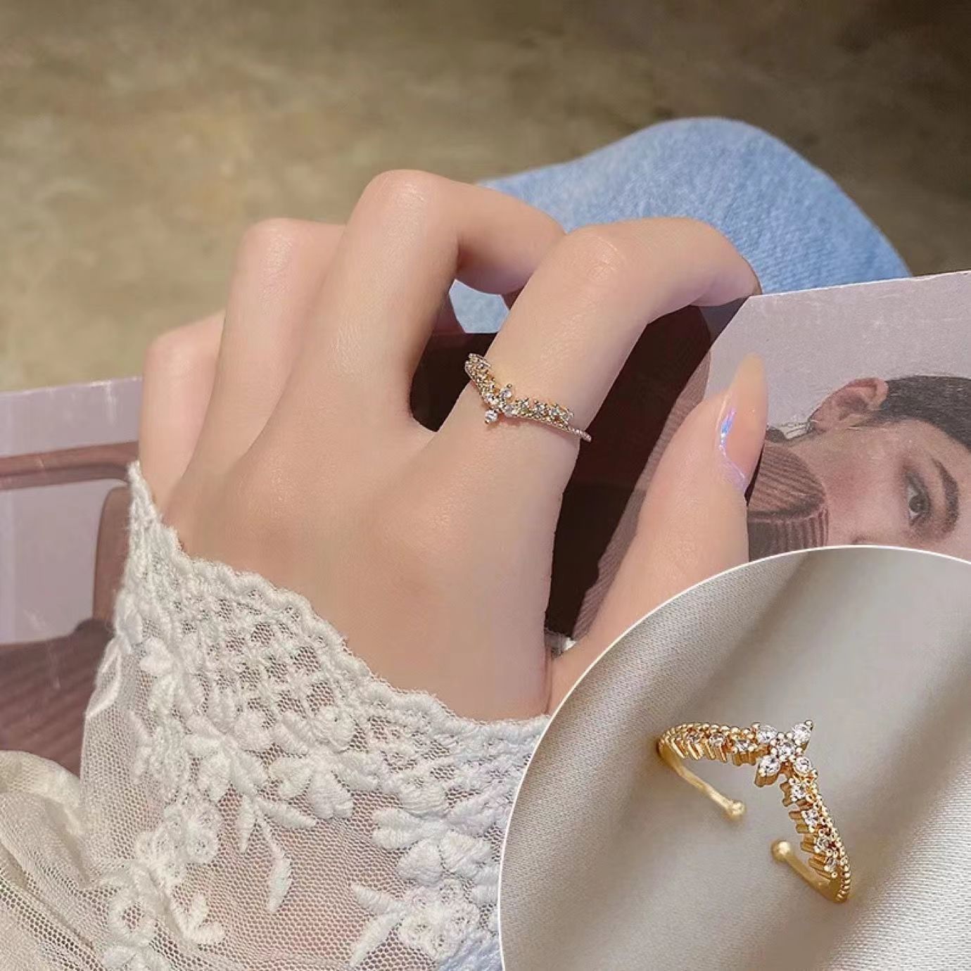 European and American Rings Crown Pearl Zircon Cross Ring Simple Versatile Personalized Opening Adjustable Ring Wholesale