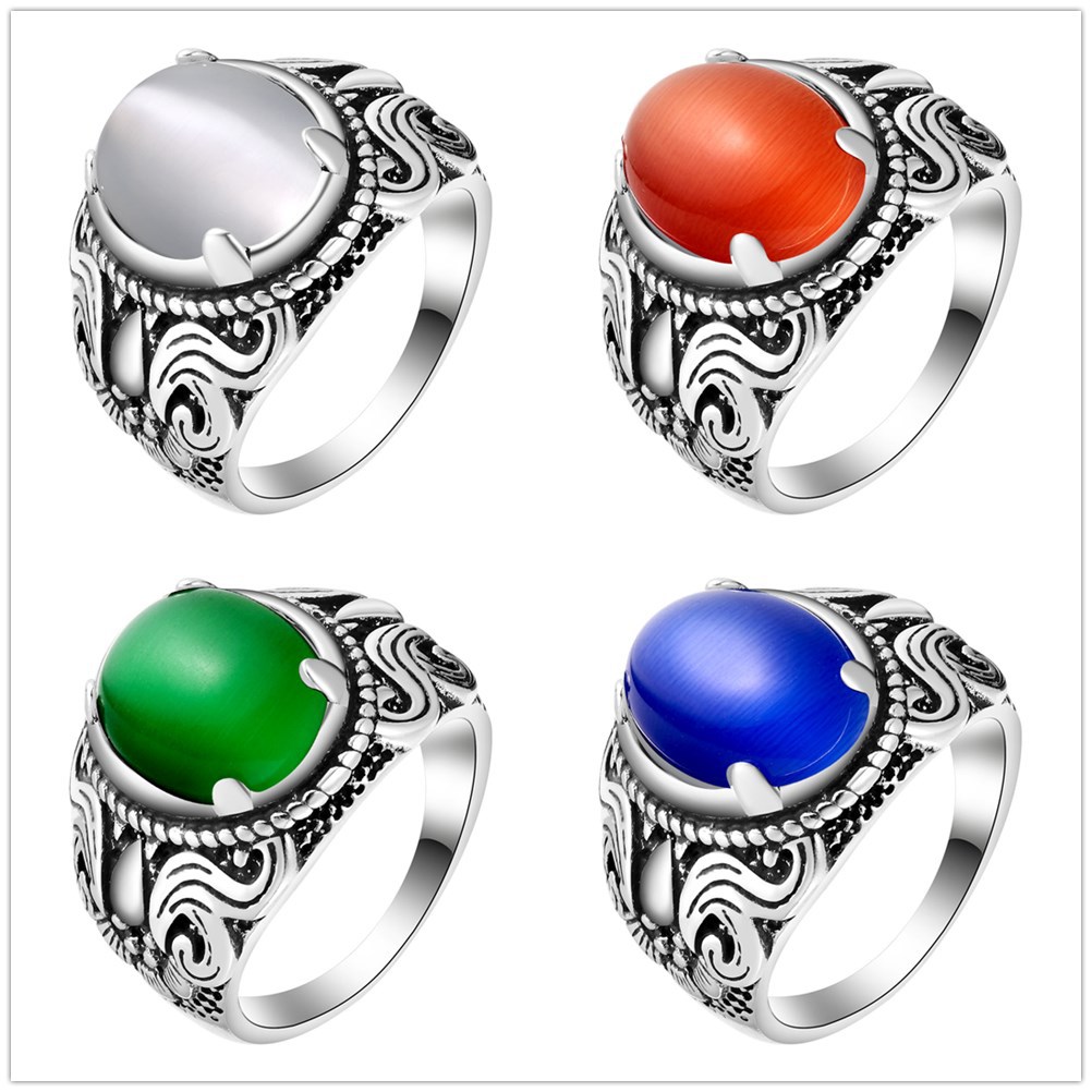 Ring silver plated jewelry creative retro Ring wish export jewelry mixed wholesale men's opal Ring