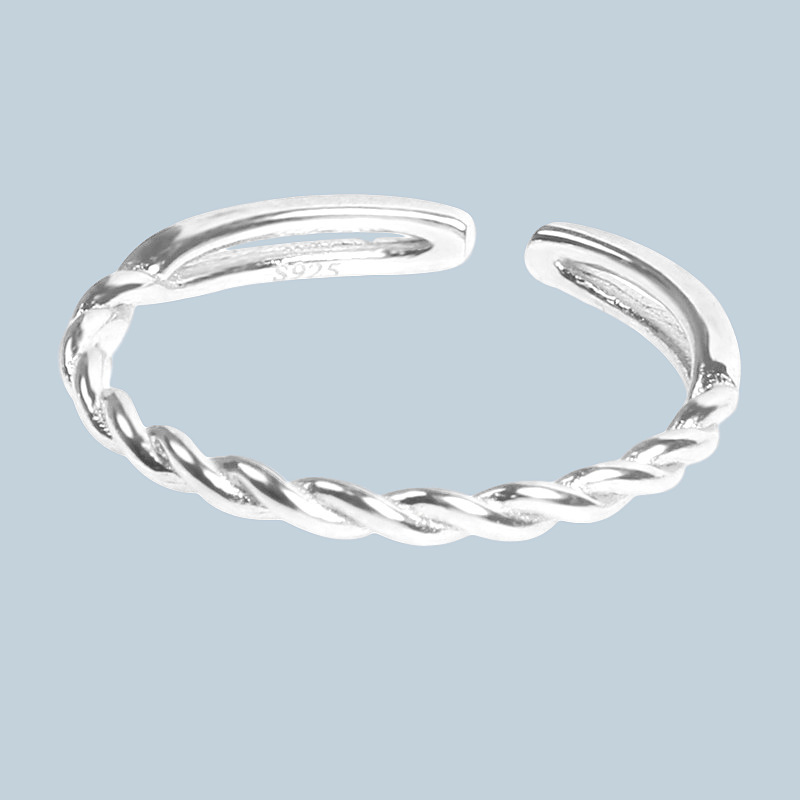 Minimalist and fresh fine twist ring opening personality Mori plain silver woven hemp rope ring hand jewelry wholesale