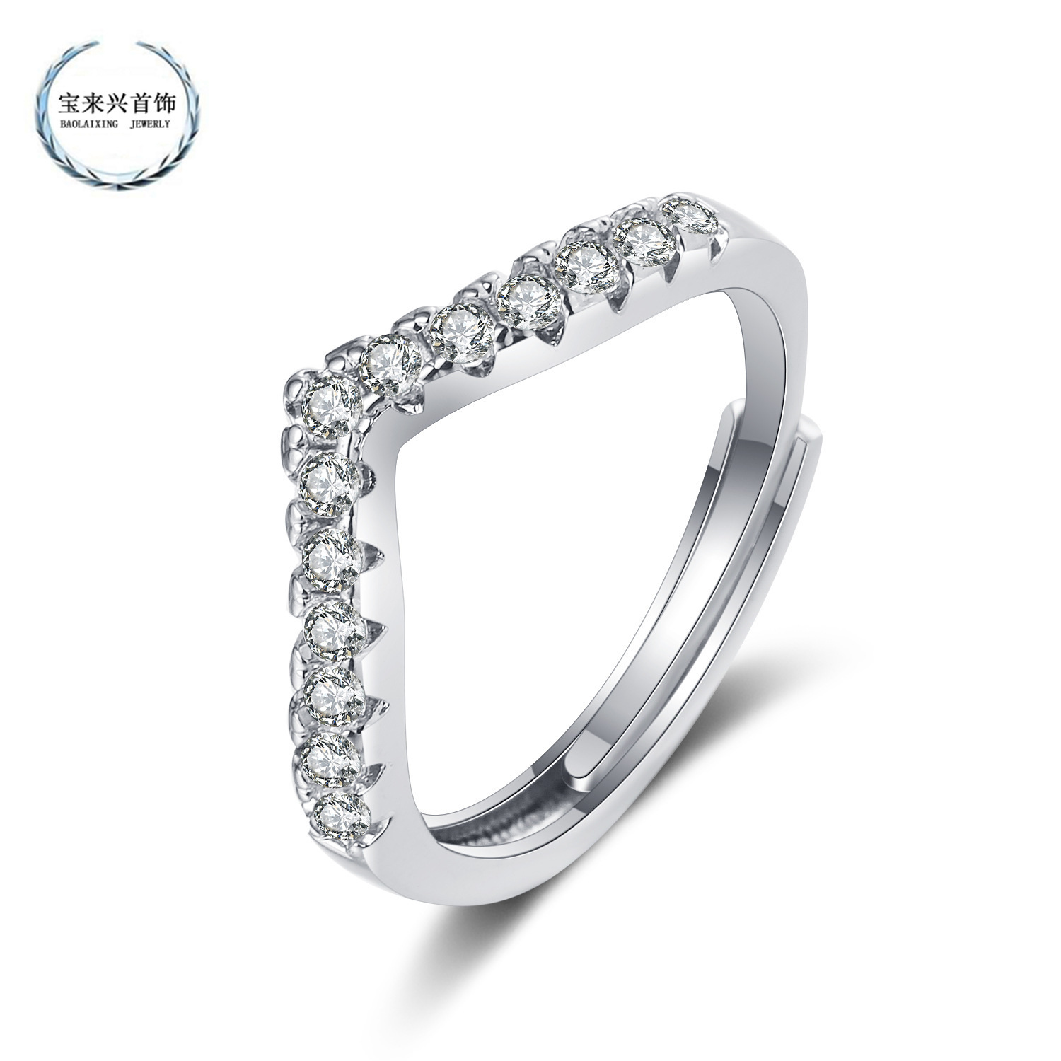 Douyin LiVe Broadcast Welfare Product Row Diamond V Row Ring Women's SilVer-plated Simulated Diamond Wedding Diamond Ring Tail Ring Combination Stackable