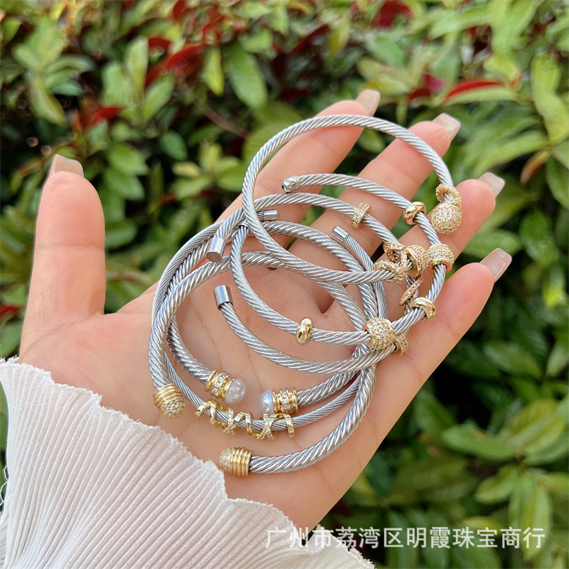 Cross-border explosions multiple styles open stainless steel inlaid zircon bracelet gold and silver double color fashion high