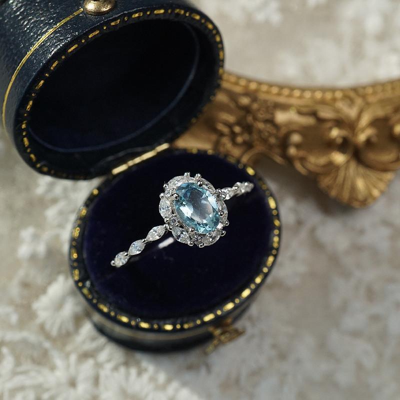 Imitation topaz crystal ring women's silver-plated vintage full diamond super shiny light luxury niche design adjustable ring