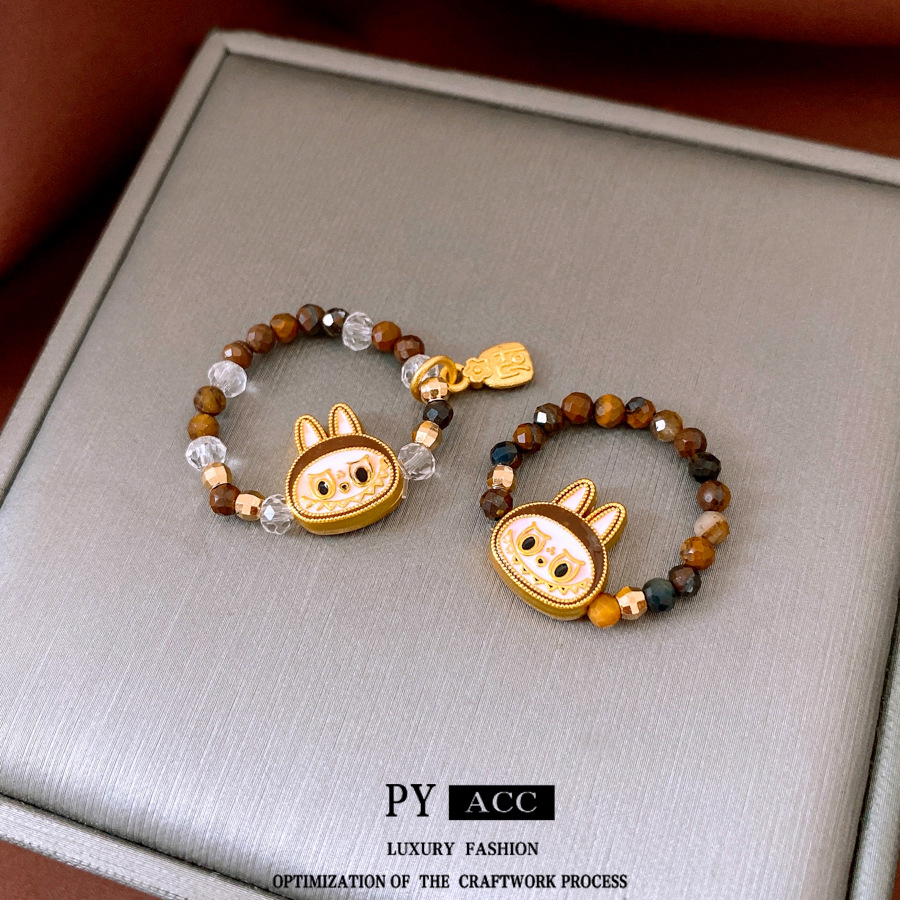 Tiger Eye Stone Lucky Bag Pendant Elastic Ring Stylish Fashion Trendy Design Index Finger Ring Niche Versatile Hand Jewelry for Women