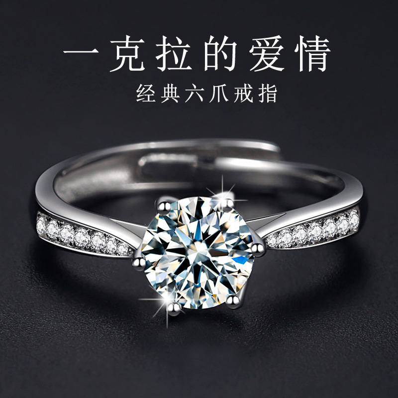 S925 sterling silver cross-border explosions delicate six-claw 1 karat Mosan diamond ring female Korean version of six-claw micro inlay ring