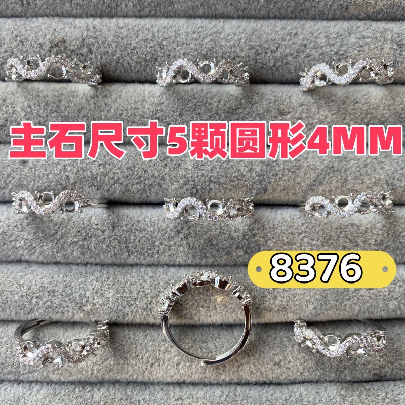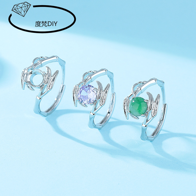 White gold-plated bamboo copper ring empty holder diy female ring holder inlaid with round huazi diamond jadeite dangerous material imitation 925 silver