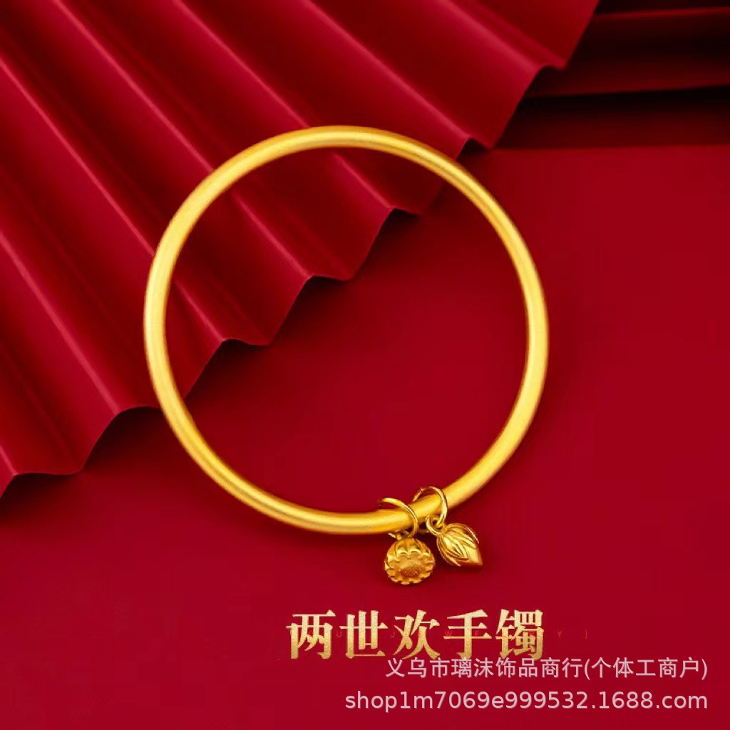 Ancient Legacy Two-generation Huan Bracelet Women's Golden Solid Poured Ring Lotus Bracelet Internet Red Sand Jinfu Bracelet Jewelry
