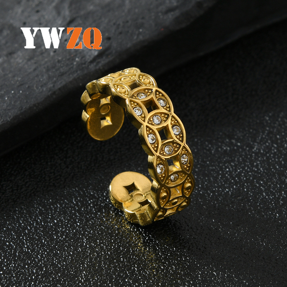 Hot-Selling Popular Qian Duoduo Ring, Hollow Lucky Copper Coin Ring, Micro-Set Diamond-Plated 18K Gold Open Ring Jewelry