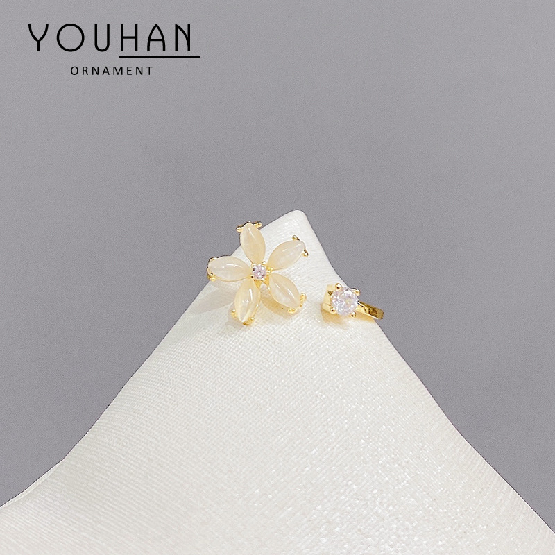 Korean Style Cat's Eye Flower Micro-inlaid Zircon Ring Adjustable Women's Daisy Flower Open Ring Ring